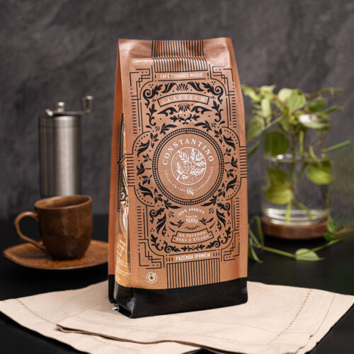O Café Constantino é especial de origem única, contendo em sua embalagem 100% grãos arábica.