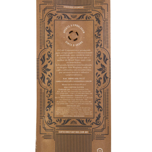 O Café Constantino é especial de origem única, contendo em sua embalagem 100% grãos arábica.