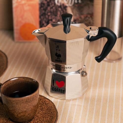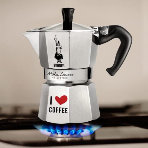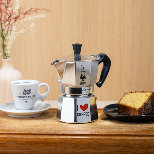 A Moka Express I Love Coffee foi pensada para quem adora as nossas cafeteiras italianas tradicionais mas apresentam um design ainda mais charmoso, para que você compartilhe o seu amor pela bebida com qualidade.