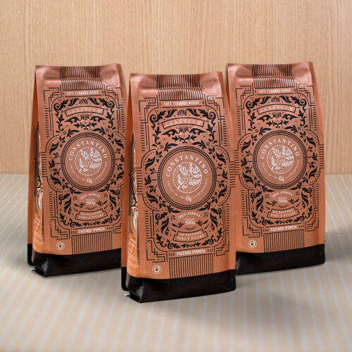 O Café Constantino é especial de origem única, contendo em sua embalagem 100% grãos arábica.