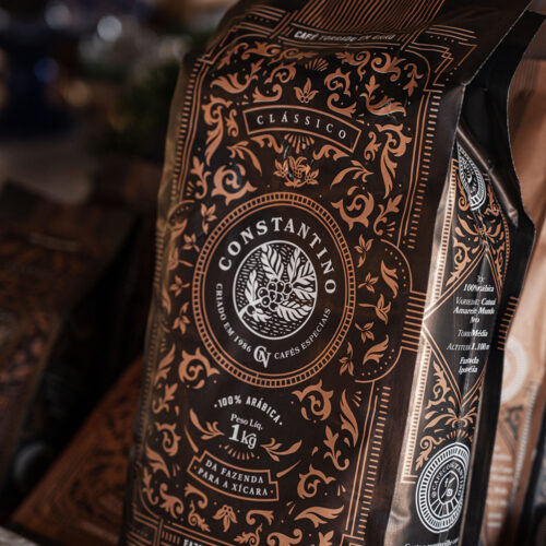 O Café Constantino é especial de origem única, contendo em sua embalagem 100% grãos arábica.